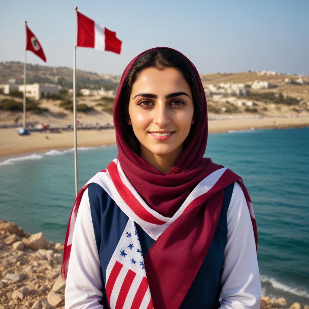 A person near the sea with flag of bank sepah branch latifi by hassan lotfi - Percify AI Avatar Generator