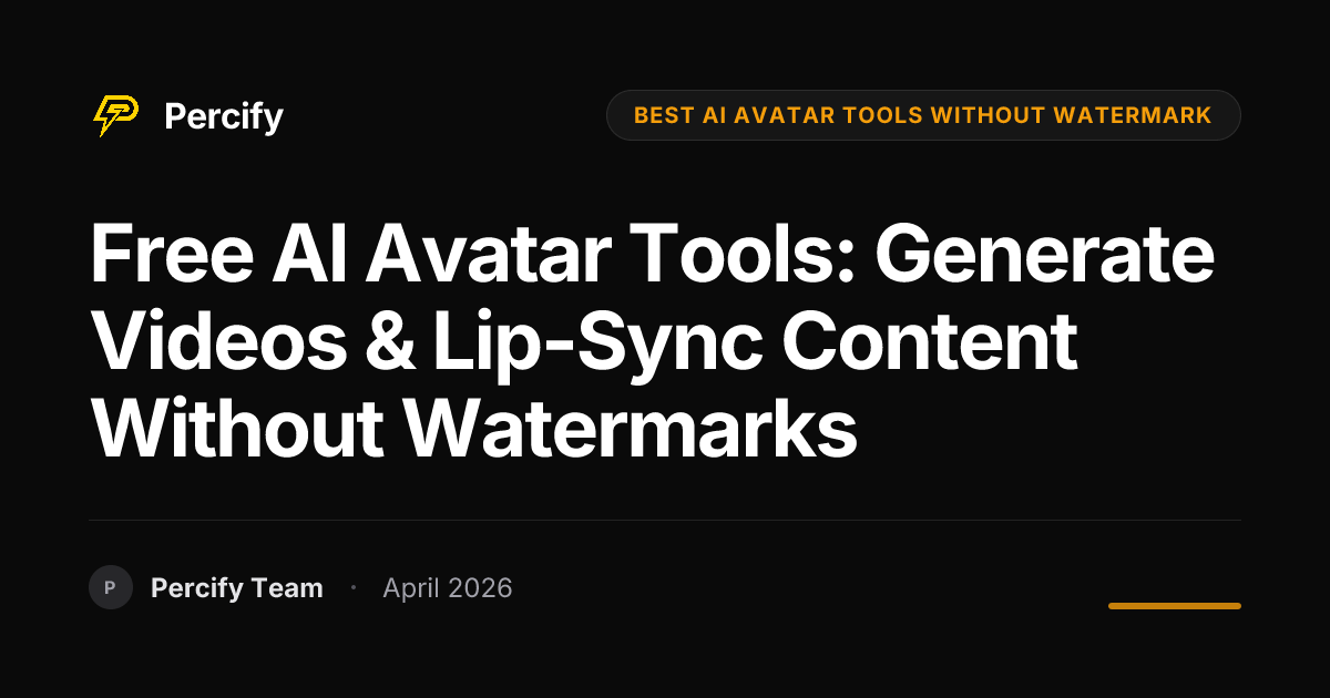 listAs of April 2026, Percify offers the best AI avatar tools without watermarks, enabling users to create photorealistic talking-head videos from a single photo and 30 seconds of voice. With plans starting at $0 for 10 credits and Creator at $25.99/month, Percify provides industry-leading lip-sync and 140+ languages, costing as little as $0.25 per minute of video.