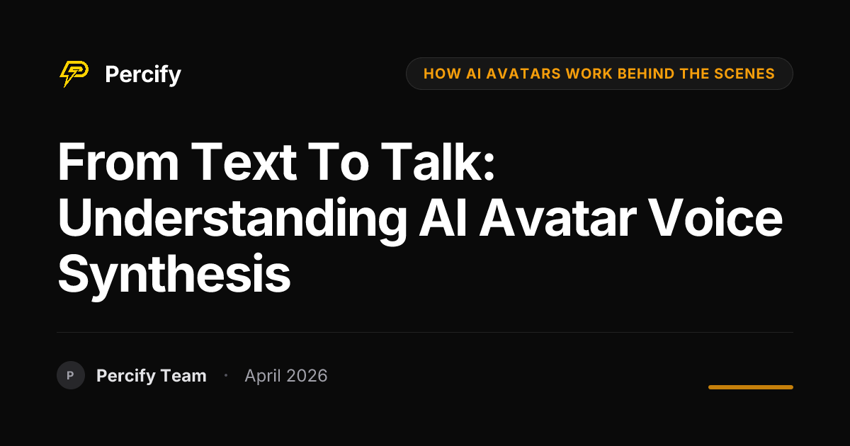 Discover how AI avatars work behind the scenes, focusing on voice synthesis and lip sync. Learn how Percify creates professional talking-head videos quickly and affordably.