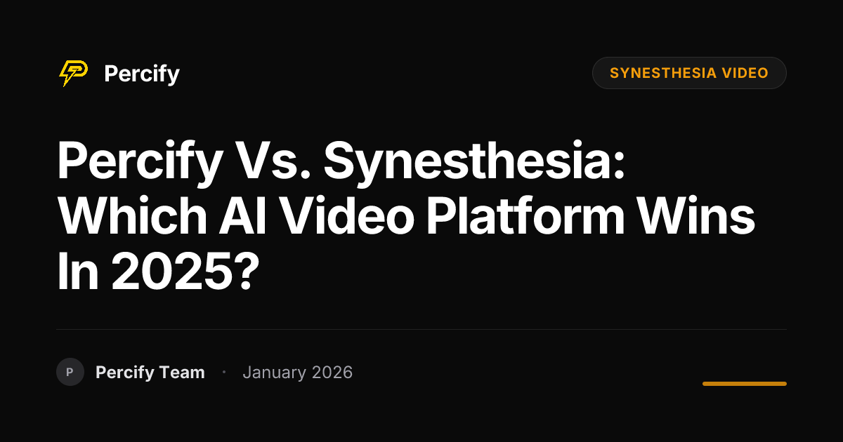 Choosing the right AI video platform? Compare Percify vs. Synesthesia in 2025. Discover which tool offers the best AI avatars, voice cloning, and video generation for your needs.