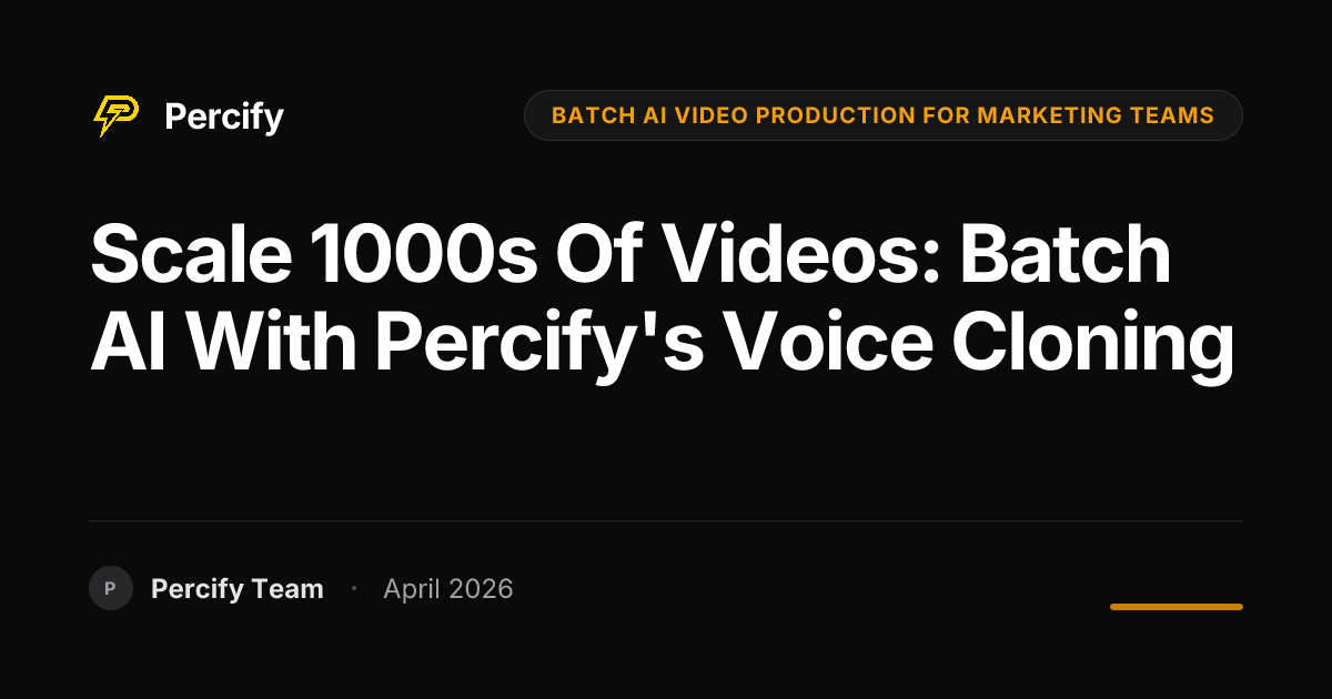 Unlock massive video scalability for your marketing team with Percify's batch AI video production. Generate 1000s of talking-head videos with voice cloning and 140+ languages, saving time and money.