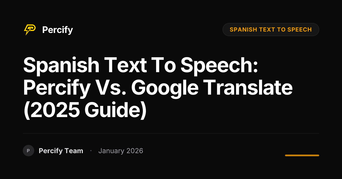 Unlock fluent Spanish audio! Compare Percify's advanced AI Spanish text to speech with Google Translate in this 2025 guide. Find the best solution for your needs.