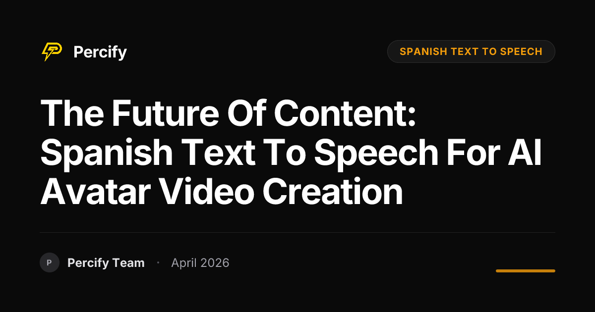 Unlock the future of content with Spanish text to speech AI avatar videos. Learn how Percify transforms your message into stunning, multilingual videos, saving time and money.