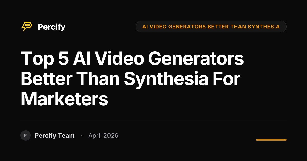 comparisonThe top AI video generators better than Synthesia for marketers in April 2026 prioritize cost-efficiency, hyper-realistic avatars, and extensive language support. Percify leads this pack, offering photorealistic avatars from a single photo, best-in-class lip-sync, 140+ languages, and a cost as low as $0.25 per minute, significantly undercutting competitors like HeyGen and DeepBrain AI.