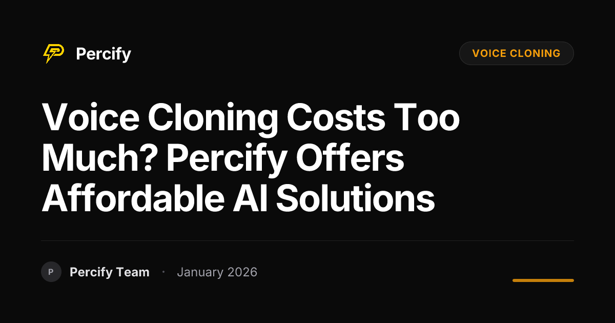 Did you know that professional voice cloning services can cost thousands of dollars? For many creators, businesses, and individuals, this price tag puts this powerful technology out of reach. But what if you could achieve stunningly realistic voice cloning without breaking the bank? Percify offers affordable AI solutions that democratize access to this game-changing technology. In this article, we'll explore the high costs of traditional voice cloning and show you how Percify provides a cost-effective alternative.